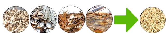 На первом этапе производства древесные отходы без металлических включений (например – горбыль, тонкомер, обрезь, некондиционная доска и т.п.), необходимо измельчить в щепу с целью подготовки сырья к просушке. Для этой цели следует использовать измельчители древесины.