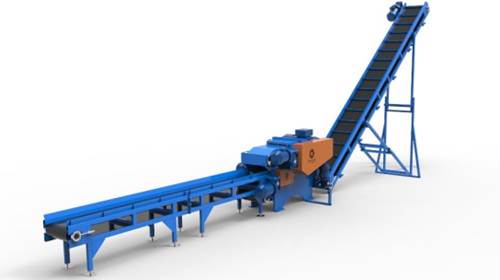 Рубительная машина барабанного типа мод. МРБ 55 предназначена для измельчения крупногабаритных древесных отходов в щепу. В погрузочном окне измельчителя сверху и снизу расположены два захватывающих зубчатых вала, которые вращаются навстречу друг другу и обеспечивают плавный захват сырья. Для автоматизации процесса производства, а также с целью удобства в погрузке данное оборудование укомплектовывается ленточным подающим транспортером мод. ТЛ 500 (6 метров) и выгрузным цепным скребковым транспортером мод. ТЦСЛ 400 (8 метров).