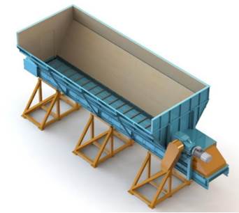 Бункер-транспортер мод. БТ предназначен для приема сырья при помощи погрузчика (трактора) ковшом и дальнейшей подачи очищенного от крупно фракционных включений сырья по ленточноскребковому транспортеру в дальнейшую переработку.
