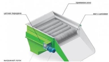 Сепаратор дисковый мод. СД предназначен для отделения крупной фракции сырья от мелкого, тем самым происходит процесс очистки опила от крупных кусковых отходов. Кусковые отходы отделяться при помощи ленточно-скребкового транспортера.