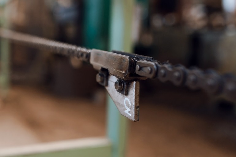 - Механизм подачи с использованием цепных шин и упором в торец колоды обеспечивает надежную подачу заготовок разной толщины и длины.