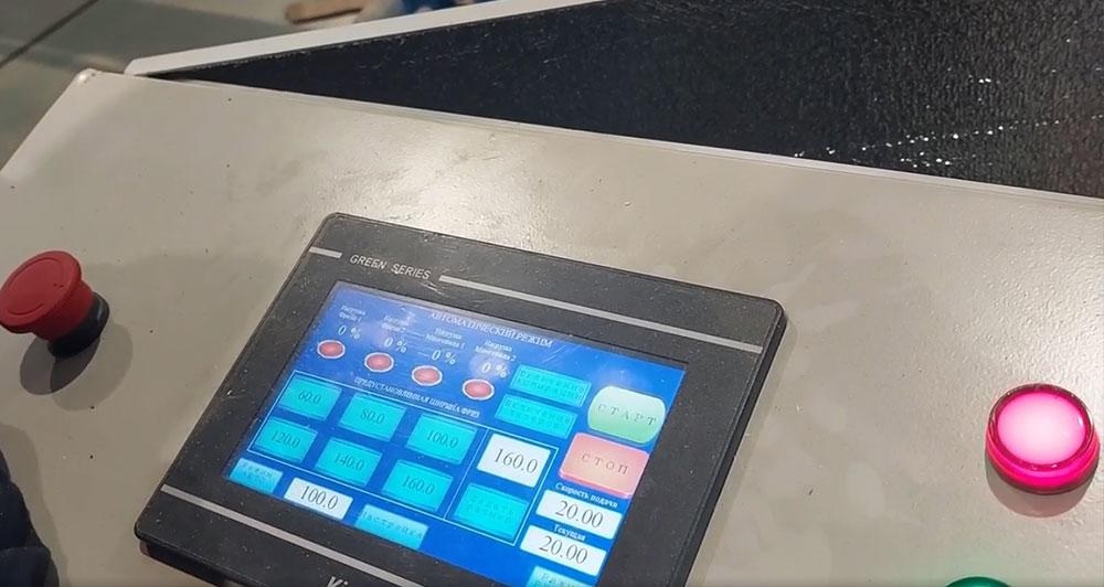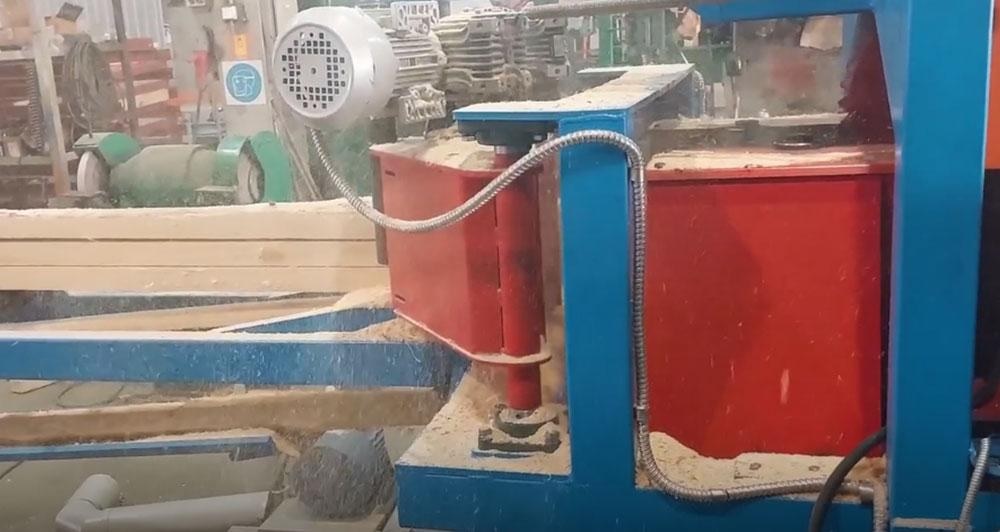 Наличие боковых фрез в схеме распиловки, обеспечивает работу горизонтальных дисков по чистой поверхности, тем самым значительно продлевается ресурс пильных дисков. Механизм сдвижения — раздвижения боковых фрез оснащен электроприводом , за счет чего оператор может оперативно изменять ширину плахи во время работы станка, при этом значение величины будет отображаться на электронном табло пульта управления. Визуальные контуры будущей плахи проецируются прямо на бревно мощными линейными лазерами, которые помогают правильно позиционировать заготовку на приемном столе.
