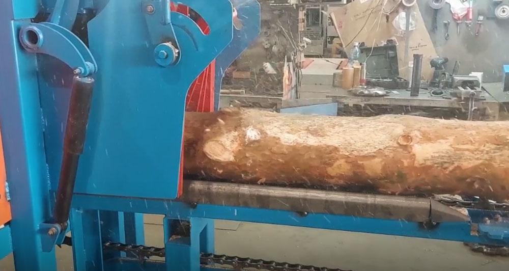 Станок для переработки тонкомера ФБС-280 — это фрезерно – брусующий станок проходного типа, предназначенный для продольной распиловки низкосортной древесины диаметром от 80 до 250 миллиметров на высококачественный обрезной пиломатериал. Сечения готового изделия могут варьироваться от 60 до 160 миллиметров по ширине и от 10 до 250 миллиметров по высоте (задается количеством и расстоянием между горизонтальными дисками), при этом длина заготовки может быть от 800 мм. до 6200 мм. На станке в распиловки бревна участвуют две фрезы, которые снимают боковые поверхности бревна, и следующих за ними два блока горизонтальных дисков, которые производят распиловку подготовленной после фрез плахи на доски. На выходе из станка получается готовая горизонтальная пачка досок и два горбыля.