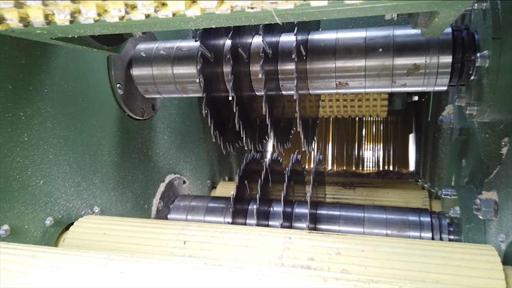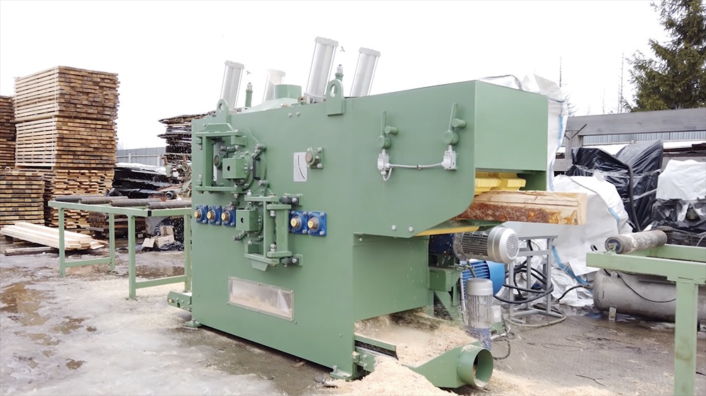 - Небольшие нагрузки на пильный блок благодаря применению дисковых пил небольшого диаметра позволяют использовать электрические двигатели меньшей мощности, что повышает рентабельность производства,