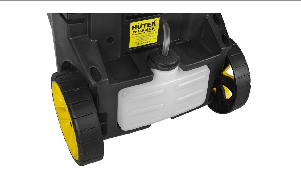 Модель HUTER W165-ARV оснащена электродвигателем мощностью 1900 Вт, который создает рабочее давление в системе 110 бар (максимальное 165 бар). Расход воды при этом составляет 375 литров в час. Водозабор может осуществляться как из системы водоснабжения, так и из отдельной ёмкости.