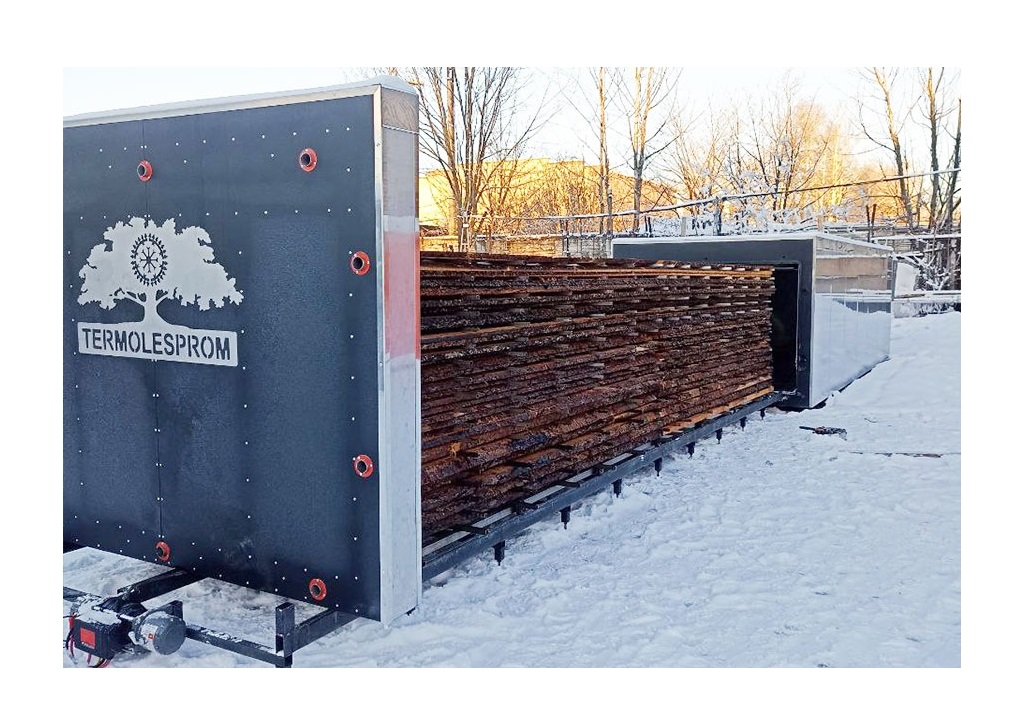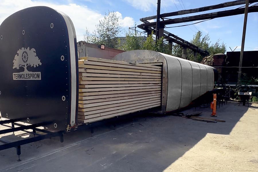 Высокотемпературная пресс-конвекционная сушильная камера — революционное решение для эффективной сушки мягких пород древесины, без потери геометрии и с обеспечением равномерной влажности на уровне 6-8% по всей длине и объему древесины всего за трое суток.